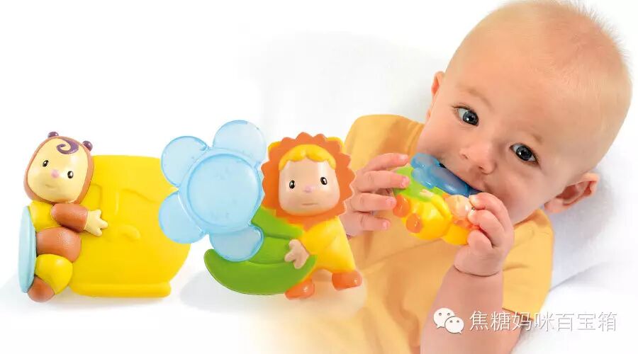 [p=24, null, left] [p=24, null, left]5.Smoby出牙搖鈴[p=24, null, left]雖然一般情況下,寶寶6個月才開始出牙。但是個體差異比較大,有早也有晚。寶寶的出牙不適,在牙齒萌出前會持續(xù)一段時間,所以4個月以上寶寶就配備牙膠可以有。相對美國玩具的濃烈色彩,法國Smoby的整體風(fēng)格就要云淡風(fēng)清得多,造型也更圓潤呆萌。出牙搖鈴兩件套,能舒緩寶寶的牙齦。蜂蜜罐款是個軟材料的撥浪鼓,花朵款是只含水牙膠,可以放進冰箱冷藏后使用。