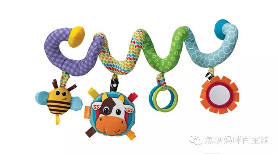 [p=24, null, left]注意:大號的才能坐人,mini只能手持著玩[p=24, null, left] [p=24, null, left]2.Step2彎彎掛鈴[p=24, null, left]三個月以上的寶寶,白天醒著的時間增加,外出的機會亦會增多。這是嬰兒車發(fā)揮重要作用的時候,你需要一些玩具來充實嬰兒車。彎彎掛鈴,其卷曲的造型可以掛在不同的地方玩耍,比如嬰兒車、嬰兒床、電動搖籃、汽車安全提籃上。Step2是是全美最大的學(xué)齡前兒童玩具生產(chǎn)商,同時也是全世界最大的滾塑產(chǎn)品制造商,以墩實堅固的戶外大型器械著稱,細(xì)心的爸媽亦能發(fā)現(xiàn),Step2在布藝玩具上也是造詣頗深。