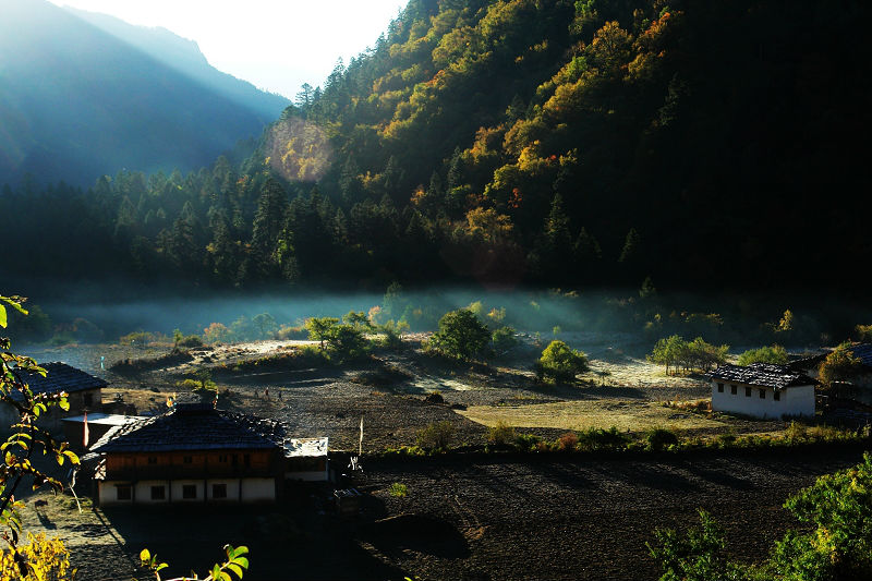 一個(gè)神奇美麗的地方,行走其間讓人有曠世桃源之感。位于梅里雪山背面的雨崩村四面群山簇?fù)?,因其地理環(huán)境獨(dú)特,所以人煙稀少,全村只有20幾戶(hù)人家,僅通過(guò)一條驛道與外界相通。雨崩村有上下村之分,上村可以通往攀登卡瓦格博的中日聯(lián)合登山大本營(yíng),而下村通往雨崩神瀑,沿途可以看到古篆天書(shū)、五樹(shù)同根的奇景。
